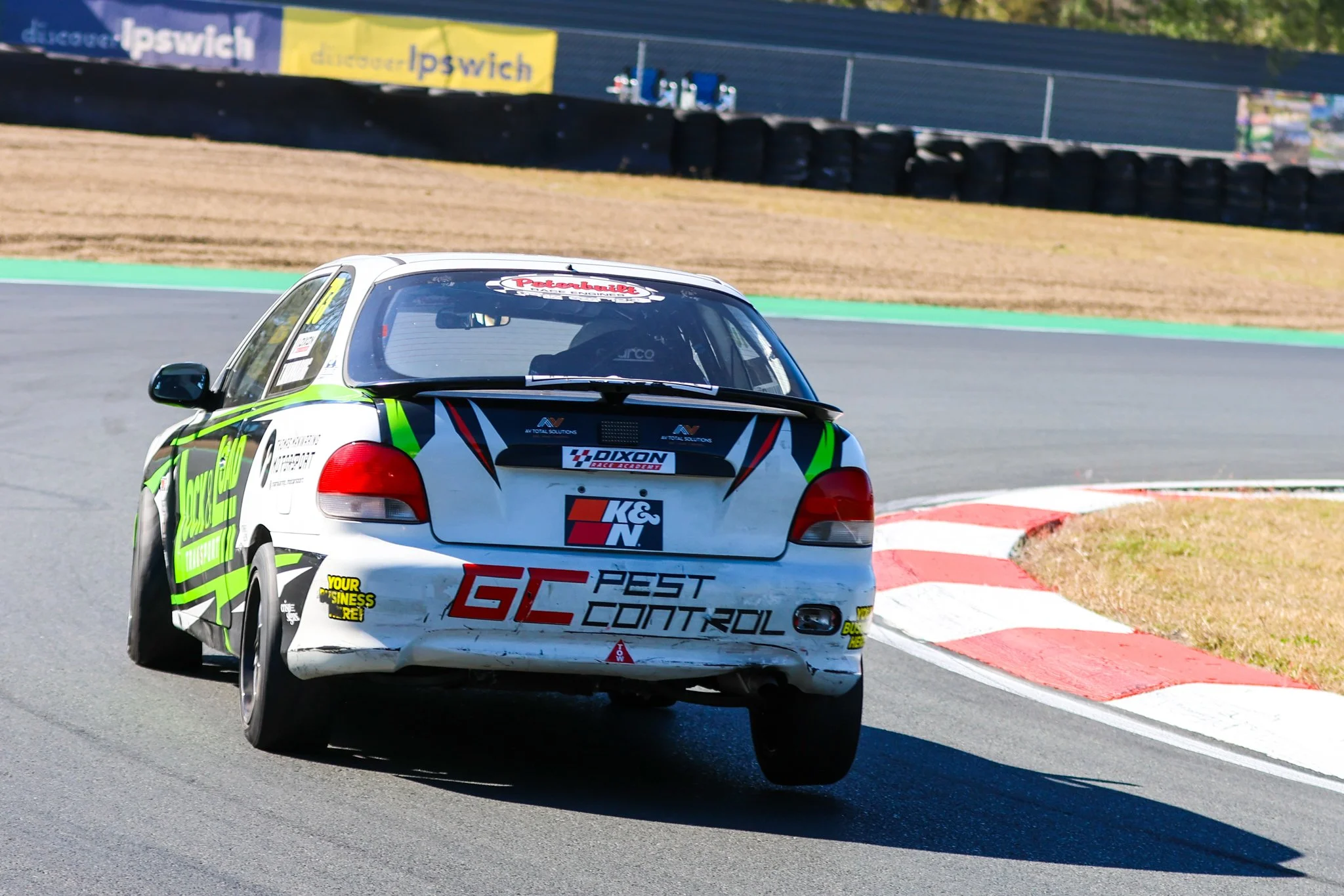 Queensland Raceway is a very basic racetrack on paper, its 6 corners and mostly straights. The mighty Excel is pumping out a whopping 90-100HP and the top speed is roughly 170-175kmp\h depending on if you have a tow or not. Because the cars are so woefully underpowered and the straights are pretty long, your minimum speed and the exit of the corners are crucial and your engine development as a whole is extremely important. If you’re off by a few kmp/h you will definitely feel it in a major way. In pre-season testing, the car was sublime over 1 lap and I had quite a lot of confidence heading into Round 1. We’d made some extreme headway with the car and found over 8 tenths of a second during the off season. However, something we hadn’t tested was what the car was like under race conditions, in an angry pack of cars and being fed dirty air.
